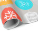 Fun holiday words and sentiments Christmas family photos wrapping gift paper in warm grey, yellow, orange red, blue aqua and white. Customise with three of your own special photos. Uniquely designed by Sarah Trett.