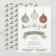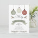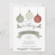 Festive holiday baubles crested with snowflake patterns set the tone for a classically beautiful yet wonderfully modern wedding design in updated dusky sage green and terracotta and white with black text. A banner gives emphasis to the lucky couple's names with details below. Back features a coordinating holly and pine bough pattern design. Elegant yet whimsical styling that will surely impress your recipients.
