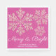 Custom Christmas paper napkins add an elegant designer touch to any holiday party and these dark berry pink and pink faux glitter snowflake napkins land perfectly between bling and minimalist. The background of deep raspberry pink sets off the three faux sparkle pink snowflakes at the top while Merry & Bright in a pretty white script font just below sets the tone - Merry & Bright can be changed to Merry Christmas if you like. Smaller white text in a simple font at the bottom is the perfect place to add your name, the name of the event or a short Christmas greeting. From the family Christmas celebration to large parties and galas, these pink faux glitter snowflake and bright magenta pink personalised holiday paper napkins are the perfect custom touch for your special event.