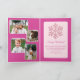 Create your own custom holiday cards with this pink snowflake 5 photo folded Christmas card design. Pink is on trend for Christmas and this elegant design with faux glitter snowflakes embraces the pink experience while showcasing your 5 favourite family photos. The front of these personalised Christmas cards feature one photo framed with a thin white border, Merry Christmas in a script font and your name at the bottom also in white and a collage of pink snowflakes across the top of the rich deep berry pink background. Inside there are four photo templates on the left for you to include your pictures while the right side has room for your personalised holiday message and your names. Fully customisable, these photo greeting cards filled with pink snowflakes and dark raspberry pink are ready for you to make them your own and send personalised Merry Christmas greetings to friends and family this year.