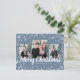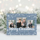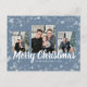 Capture the spirit of the season with this navy blue and white snowflake postcard, featuring three of your favourite holiday photos on the front and one more on the back. The delicate snowflake design and elegant white text against the deep navy background create a stunning contrast that highlights the warmth of your cherished memories. This postcard is a perfect way to send heartfelt greetings to loved ones near and far while adding a touch of seasonal charm to every mailbox. Create a lasting impression this holiday with this beautifully designed postcard that speaks to the magic of winter.