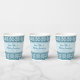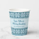 Personalised Christmas holiday or winter party paper cups featuring a cosy blue Nordic snowflake faux knit sweater pattern with your custom titie or greeting (like Happy Holidays, Merry Christmas, Season's Greetings, etc. for Christmas or Happy Birthday Name or other special occasion title). ASSISTANCE:  For help with design modification or personalisation, colour change, transferring the design to another product or if you would like coordinating items, contact the designer BEFORE ORDERING via the Zazzle Chat MESSAGE tab below or email makeitaboutyoustore@gmail.com.