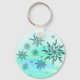 Blue and silver snowflakes riding on a turquoise and blue swirly winter breeze. Set on a white background. Fun and delicate design.