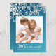 A beautiful blue background with a top border of snowflakes frames your favourite photo. A wonderful way to send your holiday greetings. <a href='http://www.freepik.com/free-vector/background-template-with-white-snowflakes_753454.htm'>Designed by Freepik</a>.<br/><br/>The card is easy to customise with your wording, font, font colour, paper shape options and choice of six paper types.<br/><br/>Not exactly what you're looking for? All our products can be custom designed to meet your needs at no extra charge.<br/><br/>Simply contact us at askcottonlamb@gmail.com<br/><br/>Coordinating products available: Just ask us!