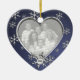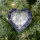 Dual photo, heart shaped ornament in blue with pretty snowflakes, with moveable date snowflake.