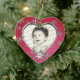 Dual photo, heart shaped ornament in blue with pretty snowflakes, with moveable date snowflake.