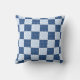 Winter themed throw pillow with a blue and white chequerboard design of snowflakes and ice.