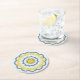 This beautiful paper coaster with the gold snowflake in the centre, is surrounded by other gold, red, green, colourful snowflakes on light blue background. It has a lace like look which adds to the elegant artistic design. Perfect for the holidays; for home and great as a gift