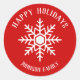 This snowflake round sticker label has a red background with a simple design snowflake in the centre with Happy Holidays greeting at the top and family name below. Personalise this with your own Christmas greeting and family name. Or customise this sticker more with changing the background colour to any colour you like. These stickers are great for Christmas card envelopes or cookie exchange gifts.