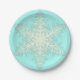 A beautiful lace ice winter snowflake in white and teal blue. An elegant design.