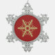 Snowflake Design Gold on Red Snowflake Pewter Christmas Ornament