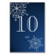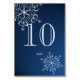 Blue and white snowflakes table number card to compliment matching wedding set.