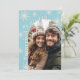 First Christmas as a married couple greeting card created using hand drawn quirky snowflakes on an icy blue background. Original art by Leslie Larson.
