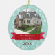 First holiday in a new home is definitely a milestone worth celebrating. Commemorate the occasion with this easy to customise Christmas ornament. This memento features your photo with custom text on a colour banner. Photo is framed with a flurry of falling snowflakes. Preserve your life moments with these holiday ornaments.