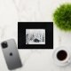 The Elegant Winter Snowflake Foil Accents Business Holiday Card is a stylish way to send warm, personalised holiday greetings to your valued customers. As part of the Black &White Business Cards &Marketing Items Collection, this card showcases a winter landscape, a custom photo on the front, framed by delicate silver foil snowflakes against a rich black backdrop, enhancing your company’s festive branding with elegance.