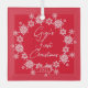 Gigi's First Christmas Ornament set on a red background framed with a white snowflake wreath. A Wonder grandparent Christmas gift sure to be treasured for many years to come. !