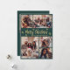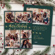 Modern Simple Elegant Calligraphy Green and Gold Snowflakes 5 Photo Collage Merry Christmas Script Holiday Card. This festive, minimalist, whimsical five (5) photo holiday greeting card template features a pretty grid photo collage, some snowflake and says „Merry Christmas”! The „Merry Christmas” greeting text is written in a beautiful hand lettered brush font script in gold on green colour background. On the reverse side with your greeting message template with 3 little snowflakes one photo template. Cute greeting card for your family and friends in Christmas Holiday season.