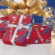 Snowflake greetings in red, blue and whites. May you have cosy and warm holiday time! Cheers!