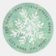 These holiday return address labels feature a hand painted white snowflake surrounded by the return address. The winter labels have a pretty green and gold background.