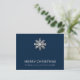 Send your holiday wishes with this Snowflake Merry Christmas Postcard. The front showcases an elegant snowflake on a deep navy background, capturing the festive spirit. On the back, a heartfelt message unfolds in navy text against a light backdrop, "May this Christmas season bring you endless joy and love, surrounded by cherished memories. Wishing you warmth, laughter, and precious moments with your loved ones. With heartfelt wishes and appreciation, [Signature]." This carefully designed postcard combines timeless elegance with a personal touch, making it a delightful way to share your holiday greetings and warm sentiments.