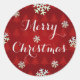 Lovely red Merry Christmas stickers with snowflakes and Christmas trees in the background.