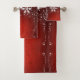 Wonderful collage of a Vector image of a Christmas Trees of Stars shining on a red background, with snowflakes, is on this Merry Christmas Holidays Bath Towel Set.. Image is public domain due to released copyright. Collage is by me.
