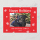 his high-quality, fully customizable photo holiday postcard is perfect for retailers seeking family-friendly seasonal products. It features a classic photo template (easily replaced with the customer's photo) set within a festive deep red border and adorned with delicate white snowflakes. The design combines traditional Christmas elements with the high-demand category of personalized photo greeting cards. Ideal for the Christmas, Winter Holiday, and Season's Greetings market. Appeals to families, individuals, and customers looking for unique, memorable, and stylish holiday greetings.