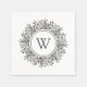 Your monogram in a Christmas wreath frame in a simple black and white design that is perfect for Christmas or New Year parties or even a Christmas wedding.