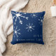 Add some holiday cheer to your home with this modern snowflake Christmas throw pillow featuring white snowflakes and the message, "It's a Wonderful Life" in white over a navy blue background. An elegant choice for xmas decor with a winter theme.