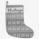 Personalised Christmas stocking featuring a Nordic Grey snowflake faux knit sweater pattern with a name in your choice of font style (shown in a modern calligraphy script). Choose from 2 sizes, different fabrics and two-sided options on the ordering page. ASSISTANCE: For help with design modification or personalisation, colour change or you would like coordinating items, contact the designer BEFORE ORDERING via the Zazzle Chat MESSAGE tab below or email makeitaboutyoustore@gmail.com.