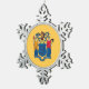 Crafted with precision and pride, this ornament honours New Jersey's rich history and cultural significance. The design elegantly incorporates the elements of the New Jersey flag, featuring the buff-coloured background with the state coat of arms, which includes a shield with three ploughs, supported by the figures of Liberty and Ceres, and a horse's head crest above the shield.