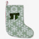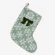 Snowflake Pattern Bow Cute Sage Green Monogrammed Small Christmas Stocking