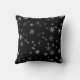 Snowflake Pattern Festive Black White Christmas Throw Pillow. The design has white snowflakes in different shapes and sizes on a black background.