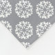 Grey and white fleece blanket with a wintry pattern of snowflakes.