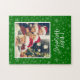 Celebrate the holidays with this custom family photo jigsaw puzzle. Puzzle has a snowflake pattern on green and the text Merry Christmas. Add your family image for a personalized touch.