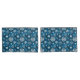 Destei's decorative white snowflake pattern over an abstract blue background.