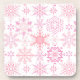 This design features a seamless pattern of pink snowflakes on a plain background. The snowflakes are of various sizes and shapes, with some being more intricate than others. They are arranged in a random, yet symmetrical pattern, creating a visually appealing and festive design perfect for winter holidays. The use of a transparent background allows for the pattern to be easily incorporated into various designs. The pink colour of the snowflakes adds a touch of romantic feel and serenity to the image, further enhancing its wintery feel. The overall effect is a captivating and elegant depiction of the beauty of snowflakes.