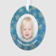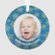 Your favourite photo is featured on a round acrylic tree ornament with gold snowflakes on a blue blurred lights Christmas background. Upload your own image to create Christmas tree ornaments for yourself or give as a gift to family, friends, parents and grandparents! MORE materials, shapes and DESIGNS in our store.