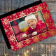 Modern, classic and traditional winter wonderland with foil falling snowflakes on a red background. The foil options are Gold, Silver and Rose Gold. Customise the text, the back text is optional, or delete. A keepsake for new parents, family and friends.