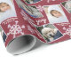 Modern meets vintage with this burgundy red Christmas wrapping paper with a repeat pattern of your 3 photos and faux pink opal iridescent snowflakes. Three text templates in white fonts can be edited for your custom gift wrap - space for your name, the year and the word Joy. Each photograph you upload is framed by a simulated pink opal frame that matches the stylish snowflakes with an iridescent feel. Create your own holiday gift wrap - just add your photos - that coordinates with the Snowflake Pink Opal collection available exclusively in my store.