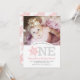 Snowflake Pink Silver Glitter 1st Birthday Photo Invitation