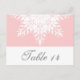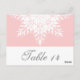 Snowflake pink, white winter wedding table number postcard, featuring a white snowflake on soft pink background. A perfect choice for classy winter December Christmas weddings. Some elements courtesy of vectorportal.com. This modern wedding template design is completely customisable that can be personalised and is part of a wedding set. Colour scheme: Pink, white, grey/grey.