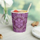Serve your holiday beverages in these cute Christmas paper cups in a festive dark plum purple and faux glitter snowflake design personalised with your text and add a custom touch to your celebration. A pattern of faux sparkle snowflakes on deep amethyst purple is the background for two circles of solid plum purple rimmed in white, one on each side of these personalised holiday paper cups. A single purple snowflake is set in the centre with white curved text above and below. Customise this text to add your name, a holiday greeting or the name of your event to be printed on each purple snowflake paper cup. Your guests will appreciate the elegant touch that these rich plum purple snowflake paper cups bring, from a holiday party to your family Christmas gathering or the annual office Christmas party.