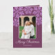 Snowflake Plum Bling Trendy Script Chic 5 Photo Holiday Card