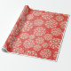 Pretty holiday or winter wrapping paper features snowflake rounds of white on a red background.