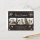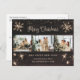 Rustic photo Merry Christmas and Happy New Year postcard featuring a photo collage with stars, snowflakes and a beautiful hand-lettered holiday greeting in a festive script font. Easily personalise this rustic wood holiday postcard with your photos, family name and text.