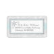 Grey and white snowflake print background with silver glitter border and polka-dot baby boy address labels.