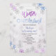 Winter ONEderland First Birthday Invitation with white background and snowflakes perfect for winter birthday.