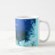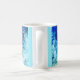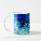 Dark but bright blue background embellished with sparkeling snowflakes and stars in different hues of turquoise and dusted with white sparkles. Delicate and pretty. Personalise if you wish.