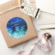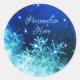 Dark but bright blue background embellished with sparkeling snowflakes and stars in different hues of turquoise and dusted with white sparkles. Delicate and pretty. Personalise if you wish.